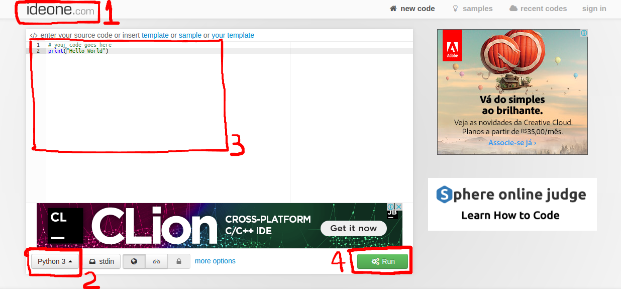 - Acesse www.ideone.com