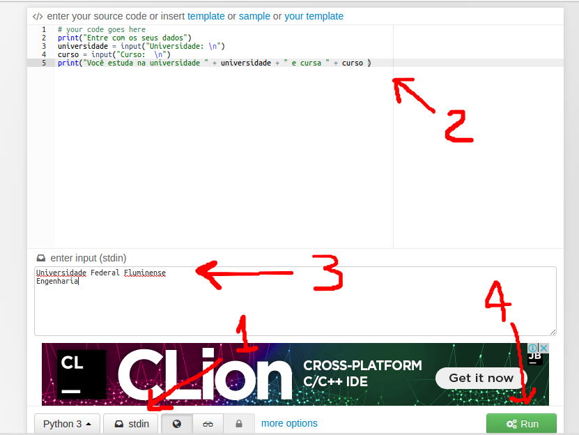 Apêndice A : Utilizando Python 3 com Ideone